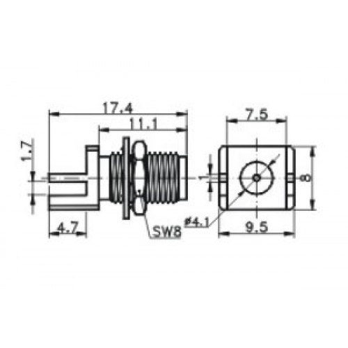 CON-SMA-EPCB : SMA PCB Edge Mount Bulkead